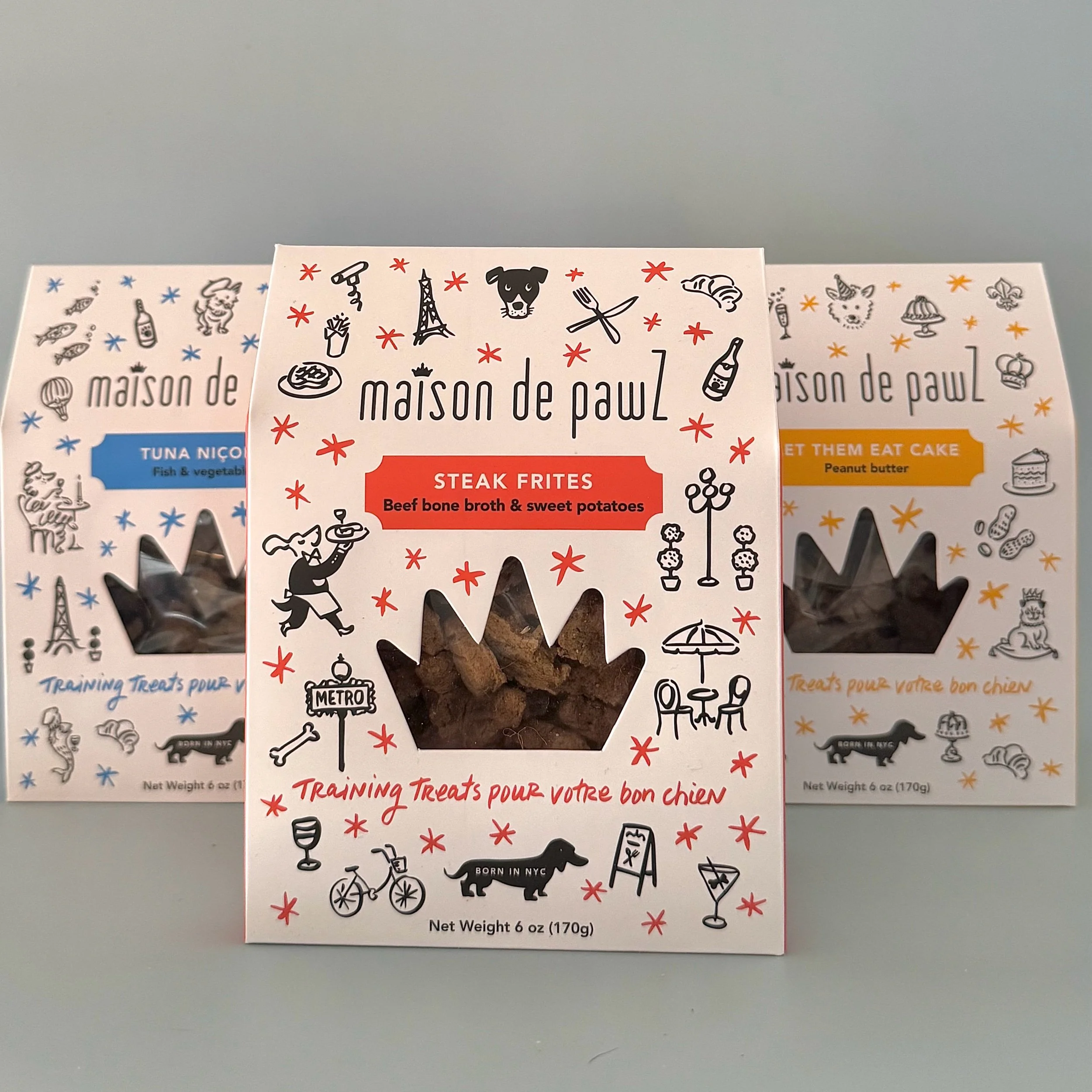 Le Biscuits Categories: All dog biscuits dog treats All | dog biscuits | dog treats | Steak Frites Training Treats $17.00 Tuna Niçoise Training Treats $15.00 Let Them Eat Cake Training Treats $15.00 Training Treat Bundle $45.00